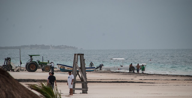 the beach the morning after the storm - the young palm trees were almost completely buried in the sand